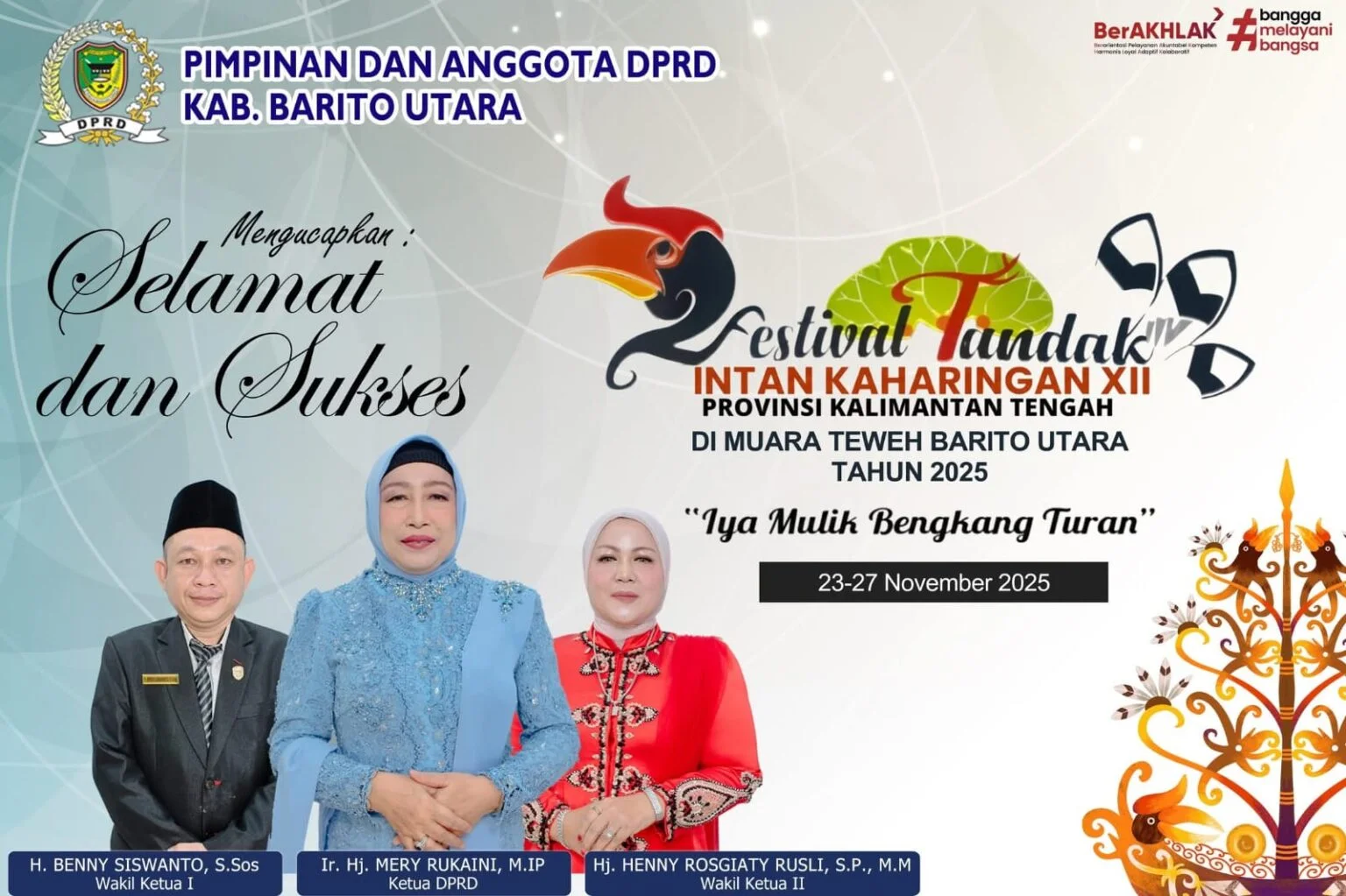 TENTANGKALTENG.ID, BARITO UTARA – Pimpinan dan Anggota DPRD Kabupaten Barito Utara menyampaikan ucapan selamat dan sukses atas pelaksanaan Festival Tandak Intan Kaharingan XII Tingkat Provinsi Kalimantan Tengah. Festival kebudayaan tersebut digelar di Muara Teweh, Barito...