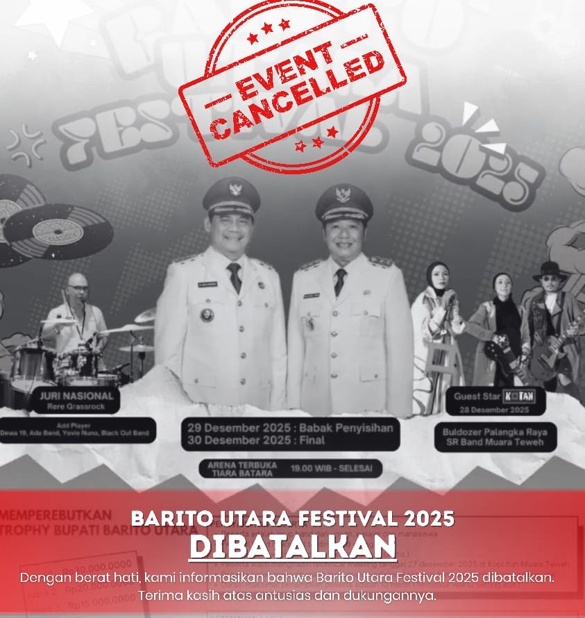 TENTANGKALTENG.ID, BARITO UTARA – Pemerintah Kabupaten Barito Utara mengambil langkah tegas dengan membatalkan rencana konser musik menyambut malam pergantian tahun. Keputusan tersebut diumumkan sebagai bentuk penghormatan dan empati yang mendalam atas musibah bencana alam yang...
