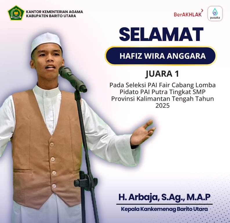 TENTANGKALTENG.ID, BARITO UTARA – Prestasi gemilang di bidang keagamaan kembali diraih oleh Kabupaten Barito Utara. Siswa SMP Negeri 1 Muara Teweh, Hafiz Wira Anggara, berhasil meraih Juara I pada cabang lomba Pidato Pendidikan Agama Islam...