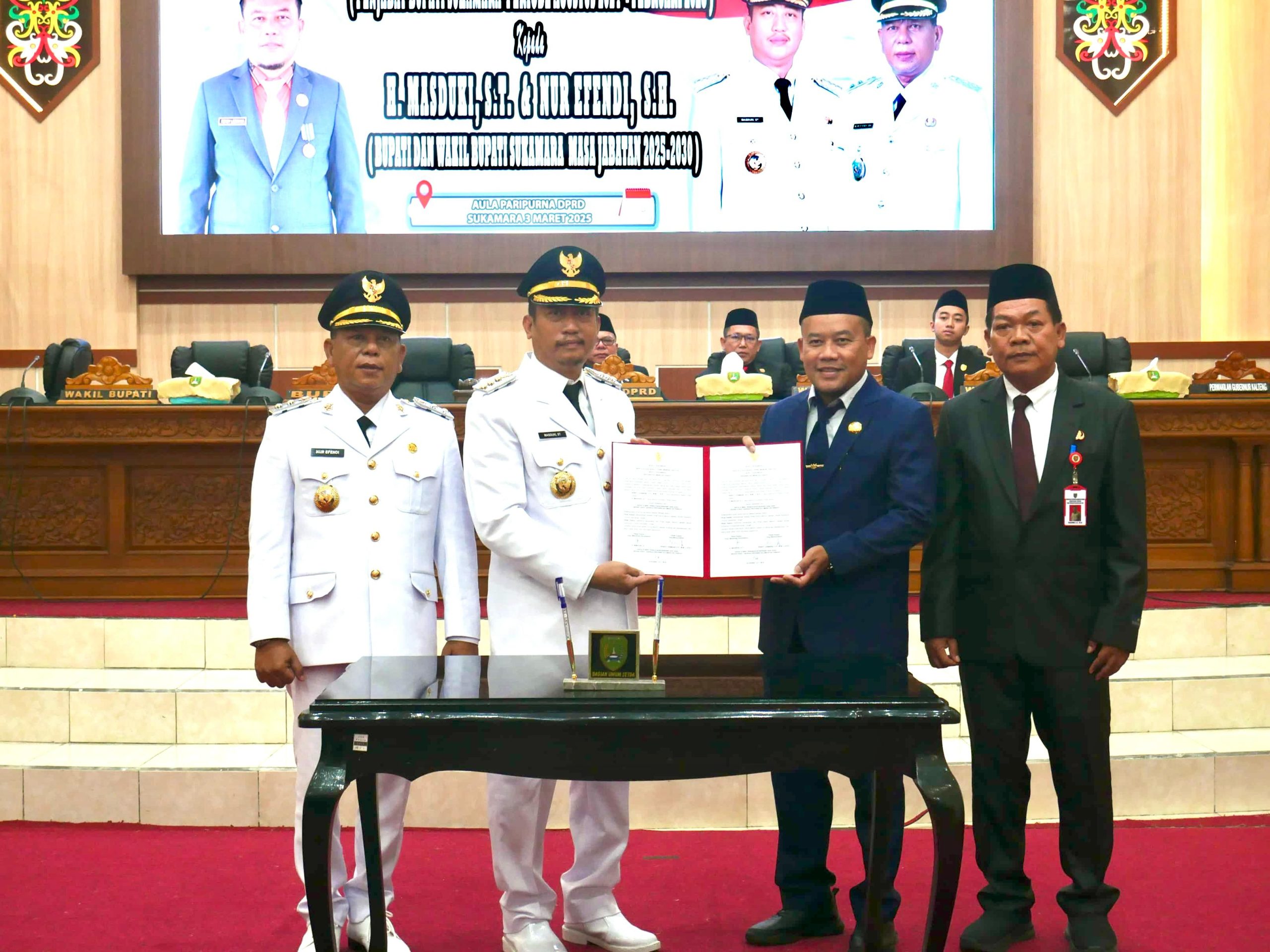 TENTANGKALTENG.ID, SUKAMARA – Pemerintah Kabupaten Sukamara secara resmi menggelar serah terima jabatan dari Penjabat Bupati Sukamara Rendy Lesmana, S.P., M.M., C.R.B.C. kepada Bupati dan Wakil Bupati Sukamara terpilih periode 2025–2030, H. Masduki, S.T., dan Nur...