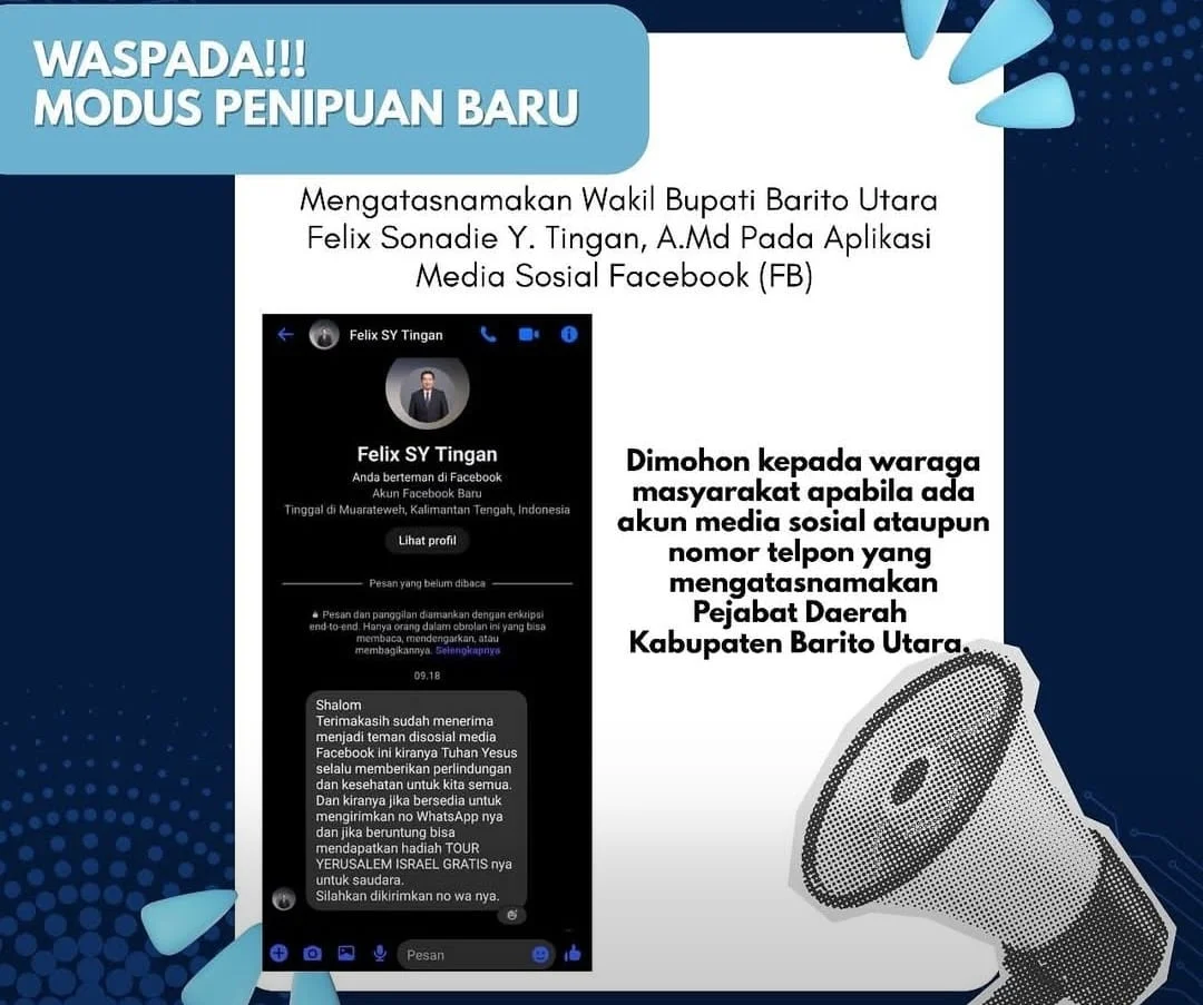 TENTANGKALTENG.ID, BARITO UTARA — Masyarakat Kabupaten Barito Utara diimbau untuk meningkatkan kewaspadaan penuh terhadap modus penipuan yang beredar luas di media sosial dan aplikasi pesan. Imbauan resmi ini dikeluarkan oleh Pemerintah Kabupaten Barito Utara melalui...